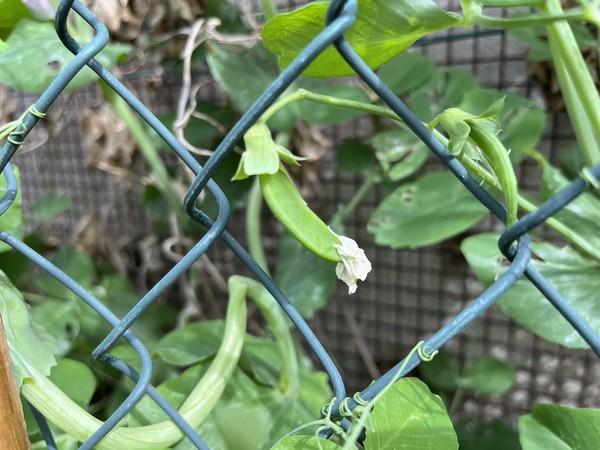 Les petits pois sont en fleur et les premières causses montrent le bout de leur nez, nous espérons une première récolte dans 15 jours.