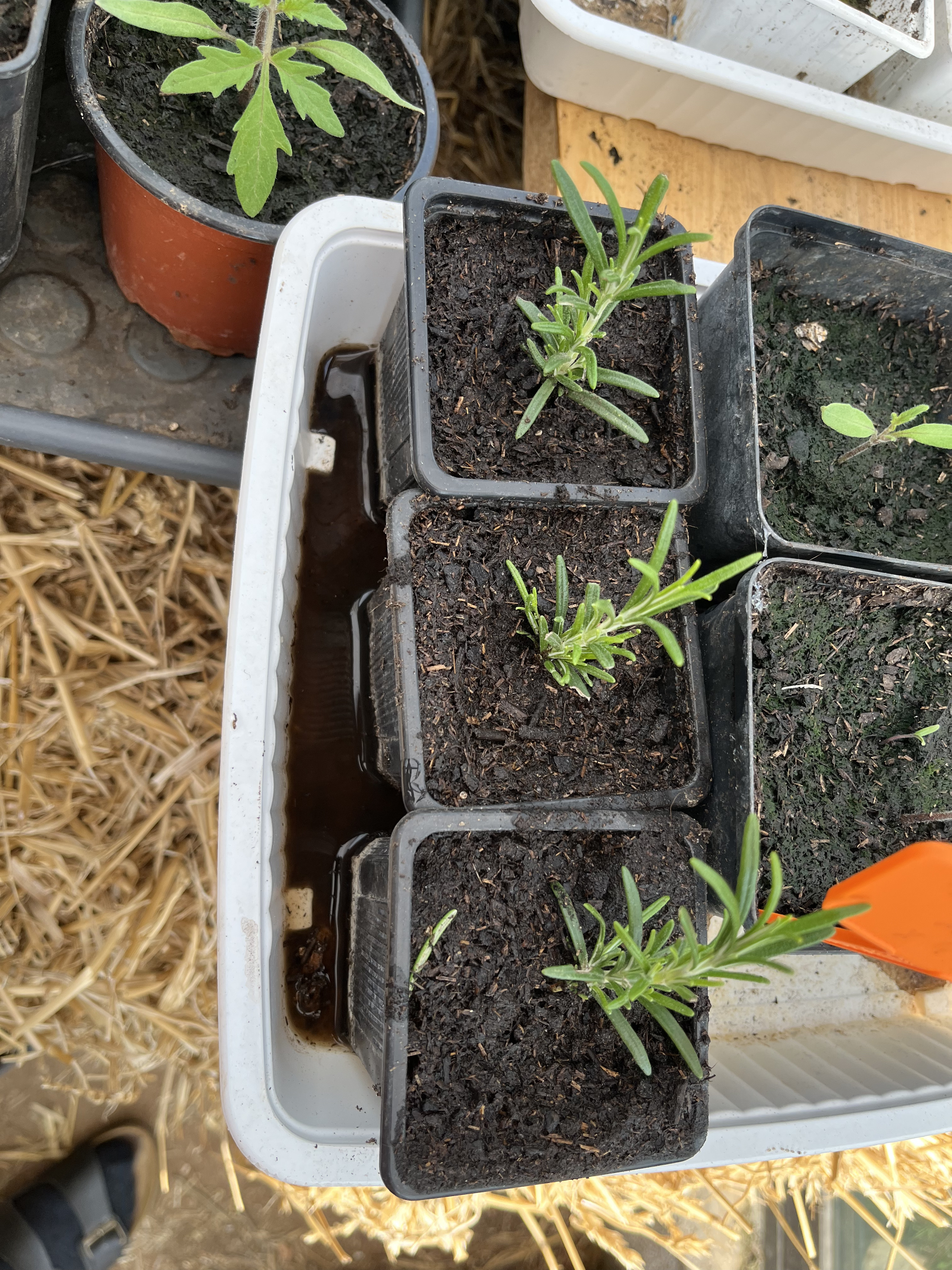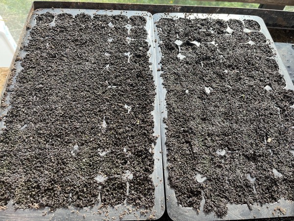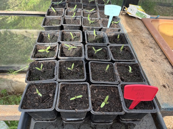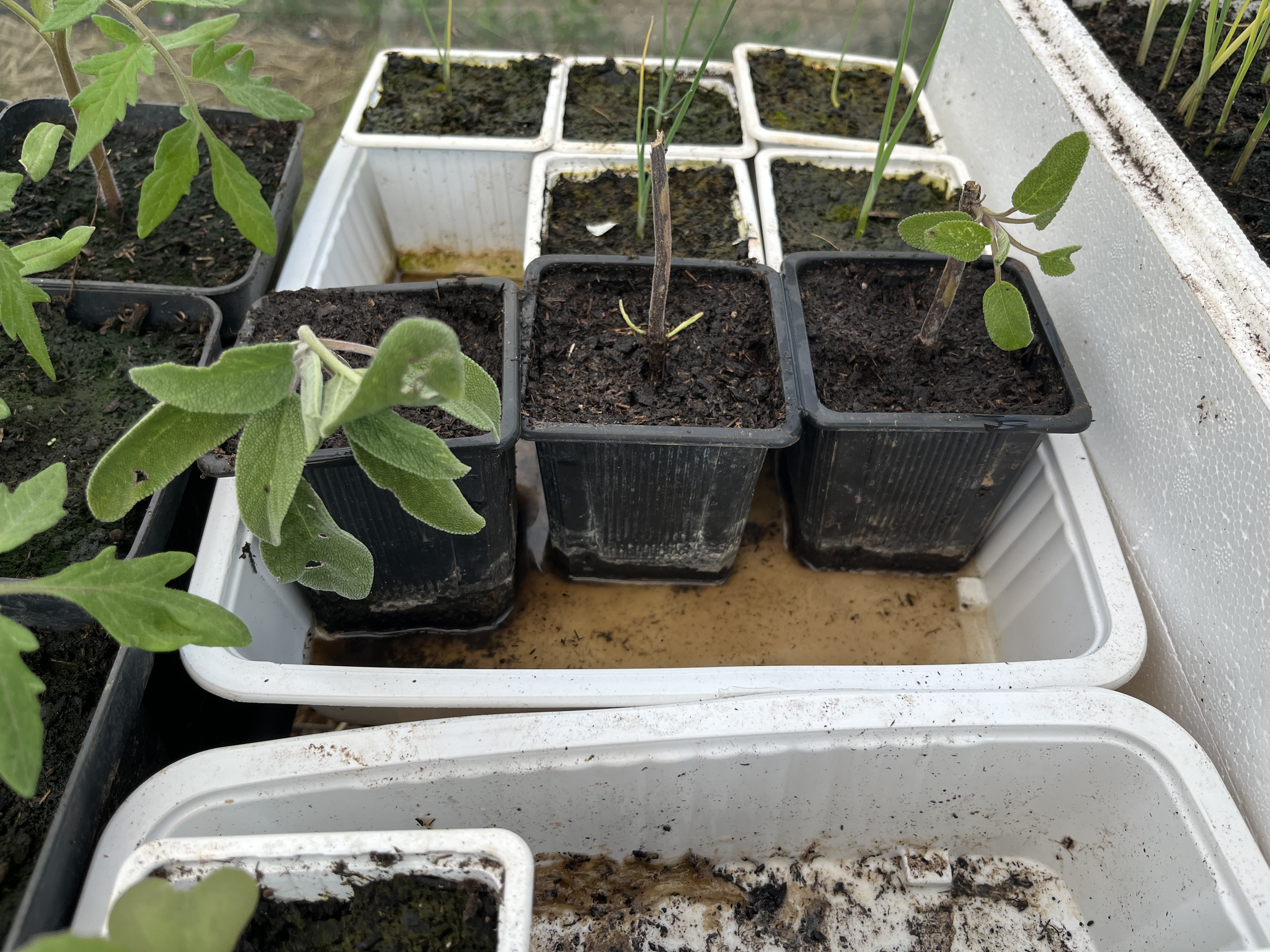 Les semis déjà sortis se portent bien et attendent leur platation. Le bouturage du romarin et de la sauge est en cours.